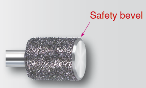 - Un chanfrein de sécurité assure la transition entre la partie diamantée et non diamantée : Cela permet un travail sur la partie du pied à traiter précis et sûr.