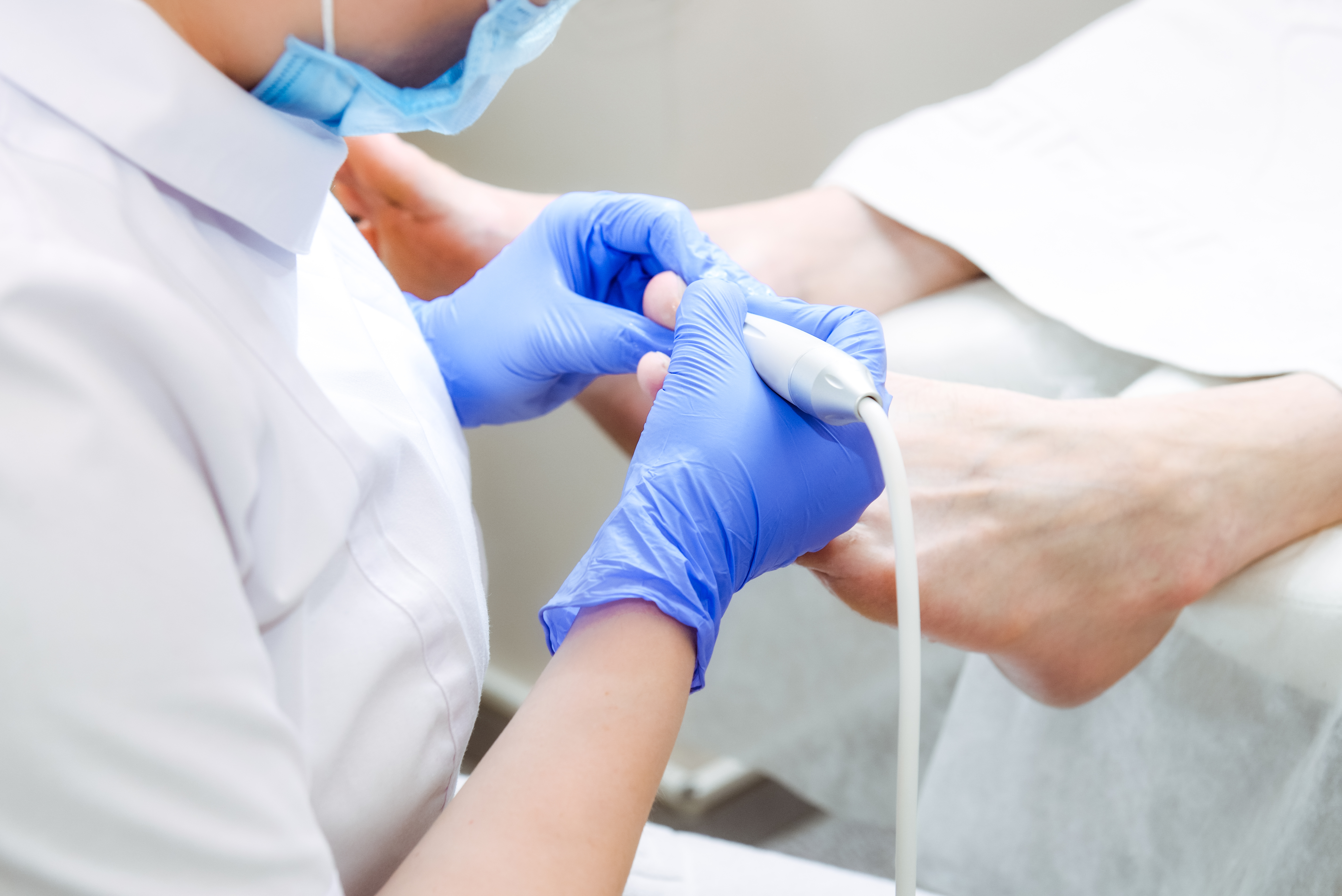 - Fraise diamantée gros avec bague verte : Traitement des callosités naissantes et affinage léger de l’ongle.